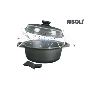 - قابلمه و تابه گرانیتی : ساختار این ظروف از آلیاژ آلومینیوم تشکیل یافته و به منظور ایجاد خاصیت عدم چسبندگی، یک پوشش با ذرات گرانیتی بر روی سطح داخلی آن ها اعمال شده است. لایه پوششی بهکار رفته عموما از ترکیب مواد معدنی و سرامیکی تشکیل شده است که خاصیت مقاومت قابل توجهی در برابر سایش و حرارت از خود نشان میدهد.