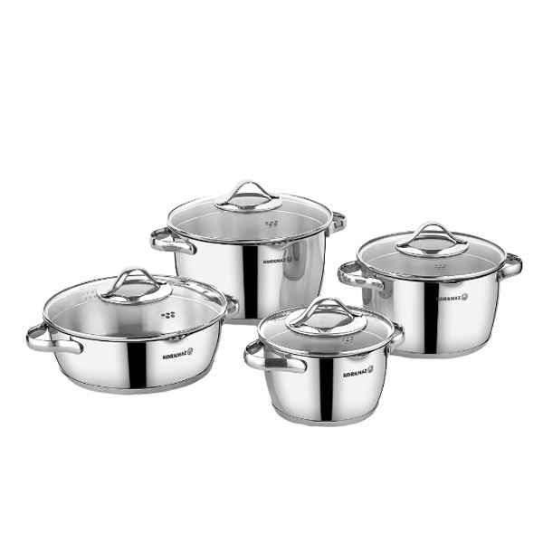 سرویس قابلمه korkmaz stara A 1969  دارای دستگیره هایی از جنس استیل ضد زنگ است که در مقابل حرارت بسیار مقاوم هستند. جنس درب این محصول از شیشه بوده که علاوه بر امکان مشاهده مواد غذایی در حال پخت،  به علت وجود ویژگی صافی که درب ها دارند می توان مواد غذایی را نیز بخارپز کرد. این محصول دارای کفه کپسولی سه لایه است که انتقال سریع و یکدست حرارت را میسر می سازد و در نتیجه سرعت پخت برای شما بیشتر خواهد شد.